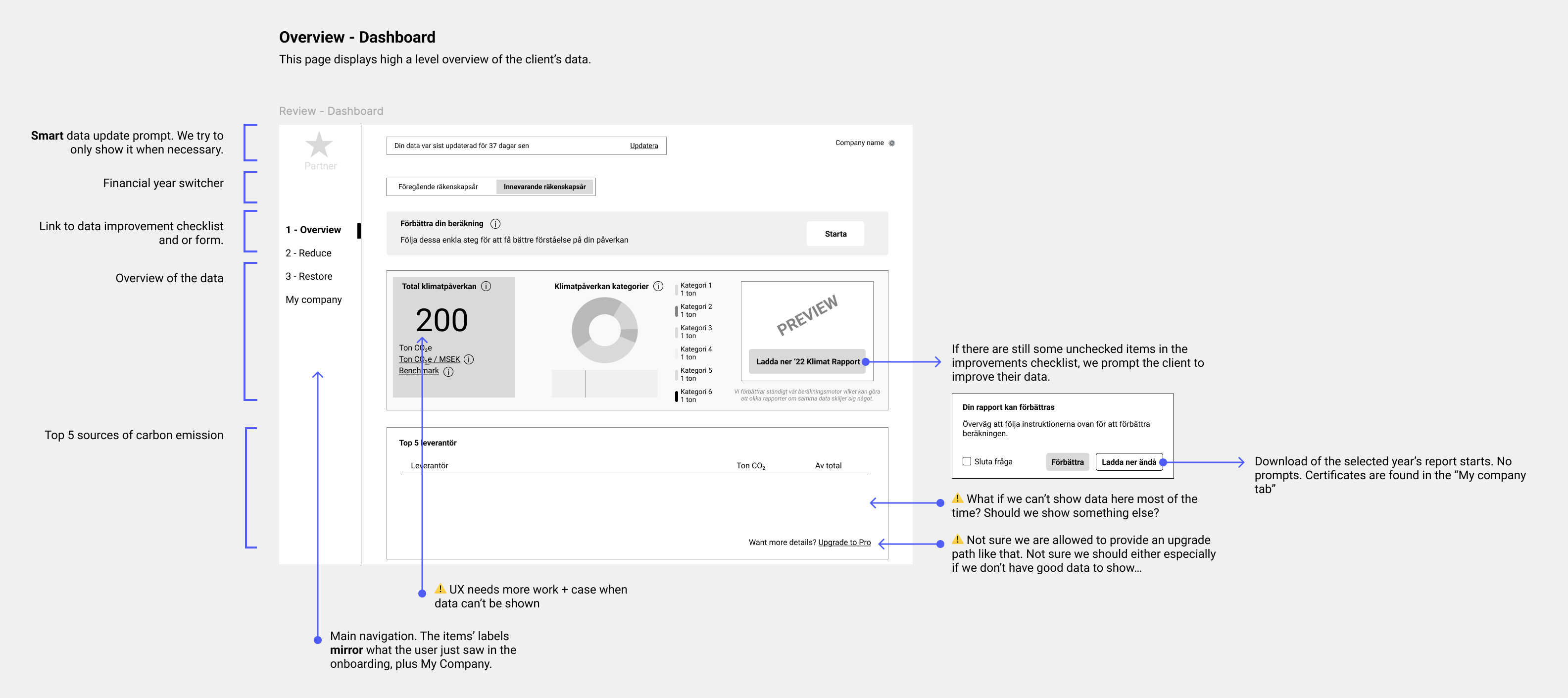 First screen after setup needed to communicate value instantly: your total emissions, trends over time, and biggest contributors.