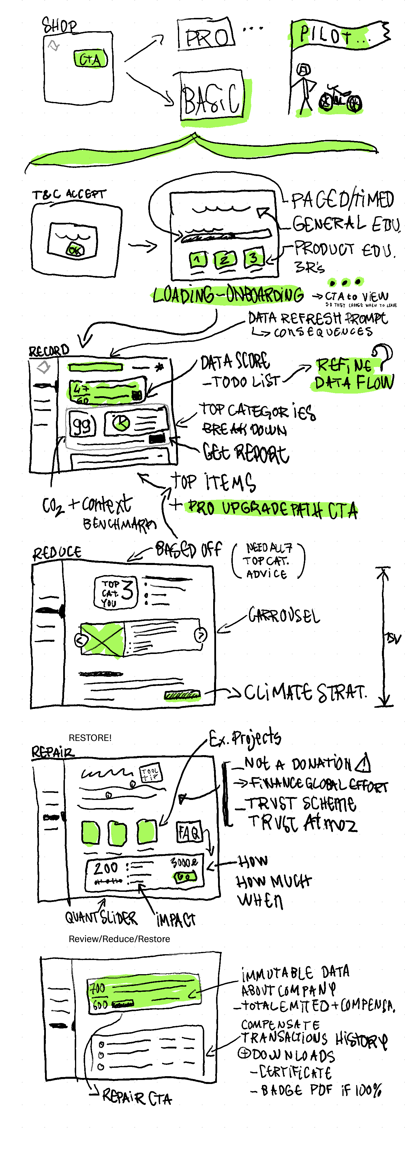 I prioritized ruthlessly. The MVP needed to enable two things: calculate emissions → identify hot spots and purchase carbon offsets. Everything else moved to post-launch.